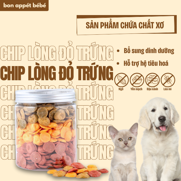 Hãy mang đến cho thú cưng của bạn những trải nghiệm ăn uống thú vị và dinh dưỡng với sản phẩm Chip Lòng Đỏ Trứng của Bon ApPÉT Bébé. Đặt mua ngay để thú cưng của bạn được hưởng những lợi ích tuyệt vời từ sản phẩm chất lượng cao này!